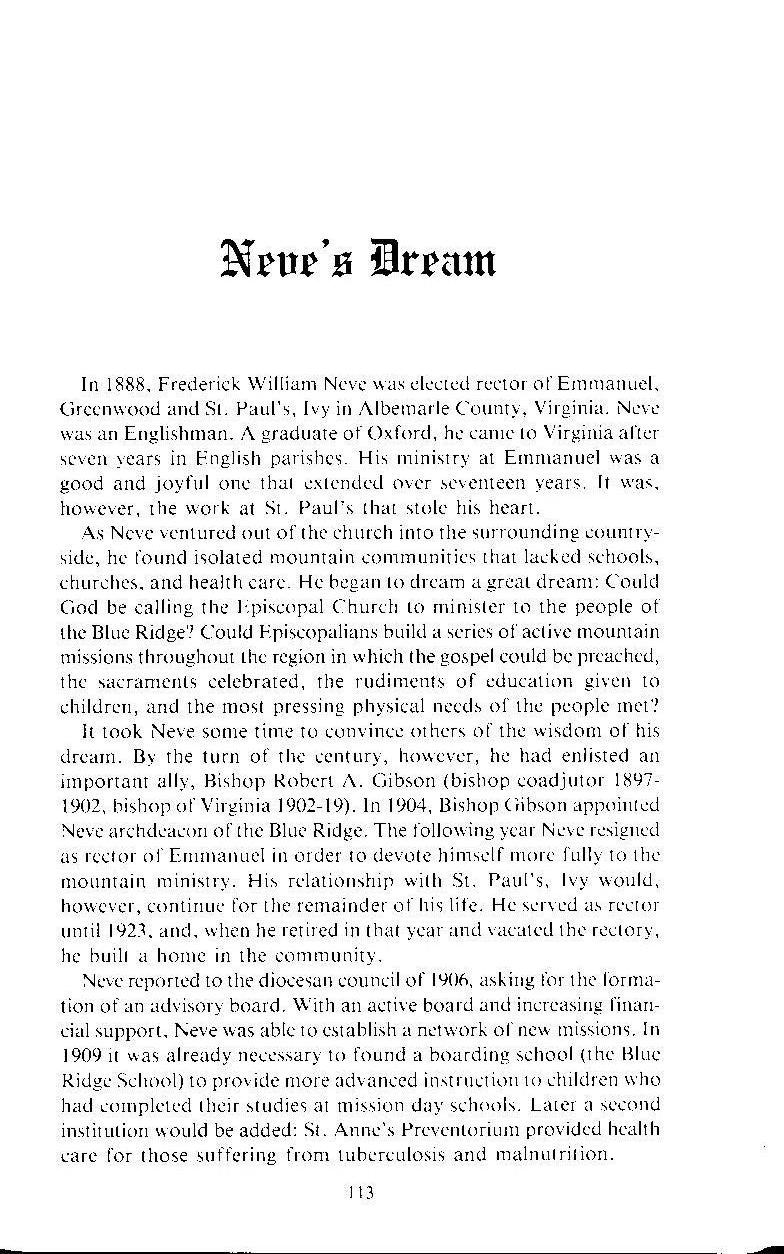 Extract from the book "The Bat and the Bishop" by Robert W. Prichard, describing Archdeacon Frederick William Neve (1855-1948).