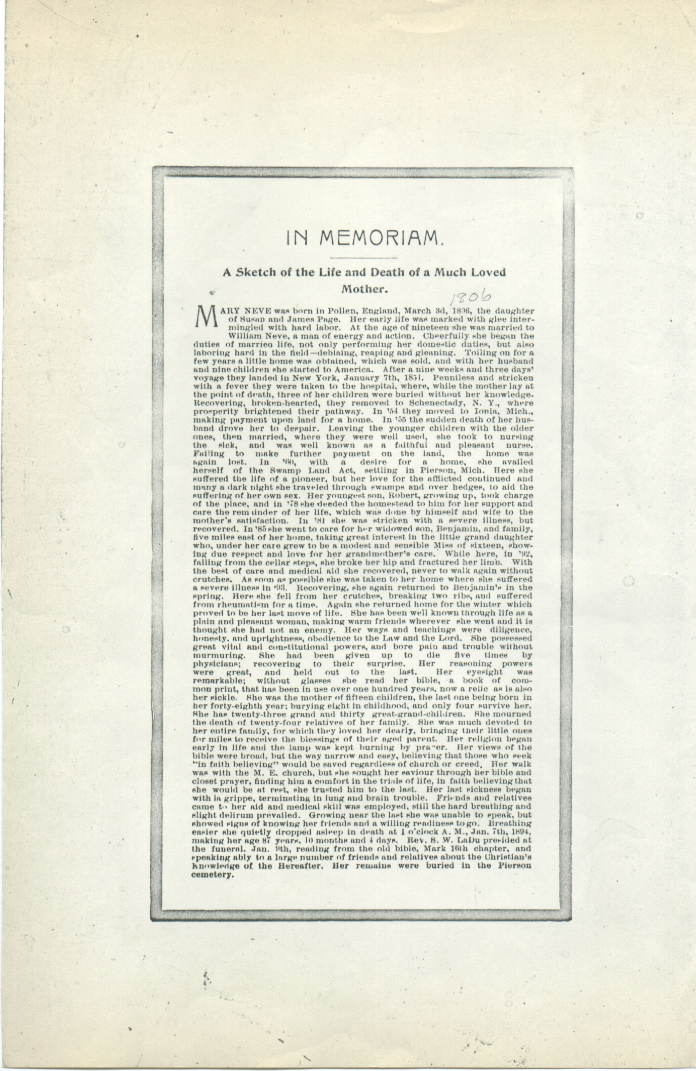 Mary Neve 1806-1894 |